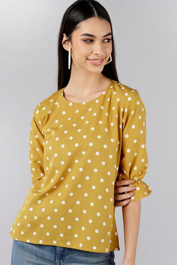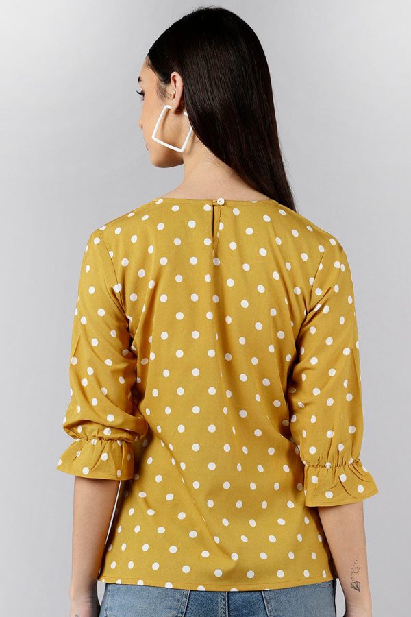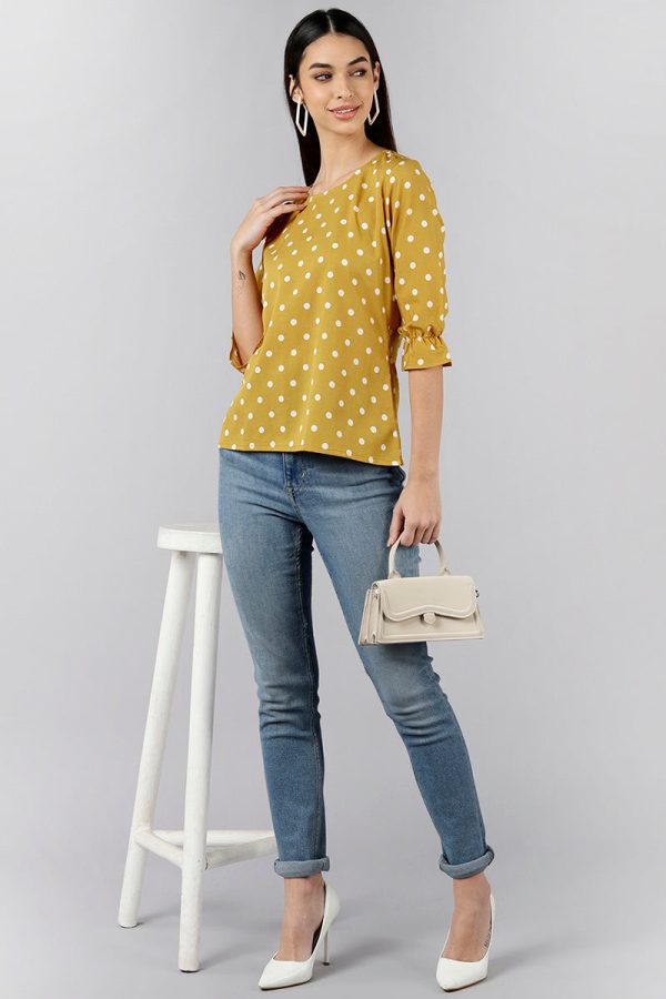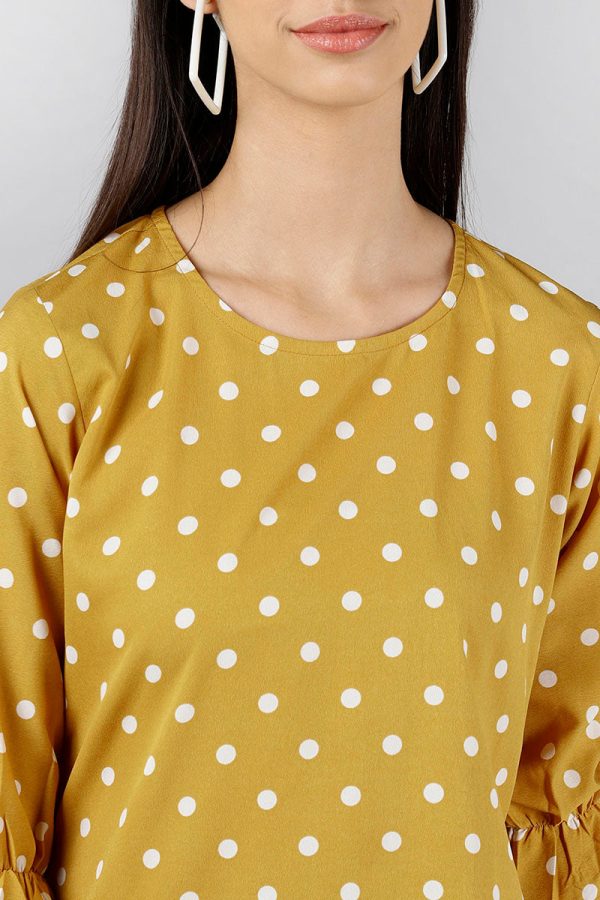 Mustard Poly Crepe Polka Dot Top